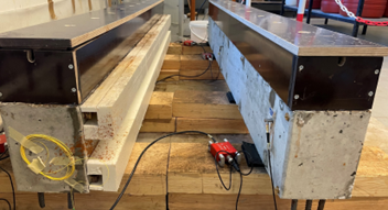 The research conducted in WP3 combines experimental investigations with finite element (FE) modelling. In laboratory conditions, reinforced concrete beams are subjected to an accelerated corrosion process and to mechanical loading, while being monitored using accelerometers and FBG strain sensors. Afterwards, a Bayesian updating methodology is applied to couple the identified modal characteristics and FE models.